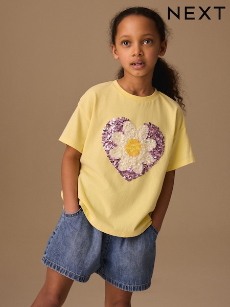 Yellow Daisy Sequin Heart T-Shirt (3-16yrs)