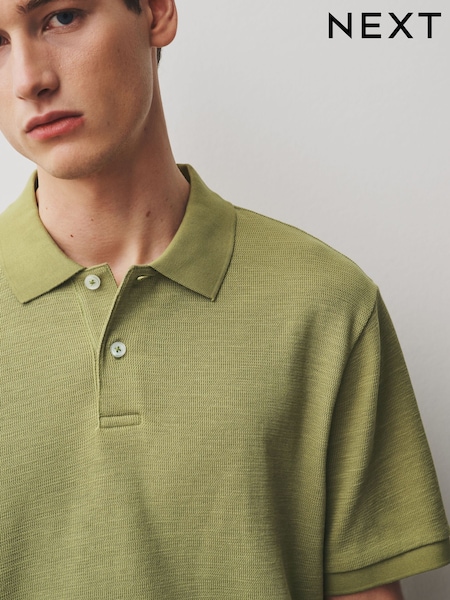 Green Slub Regular Fit Textured Smart Polo Shirt