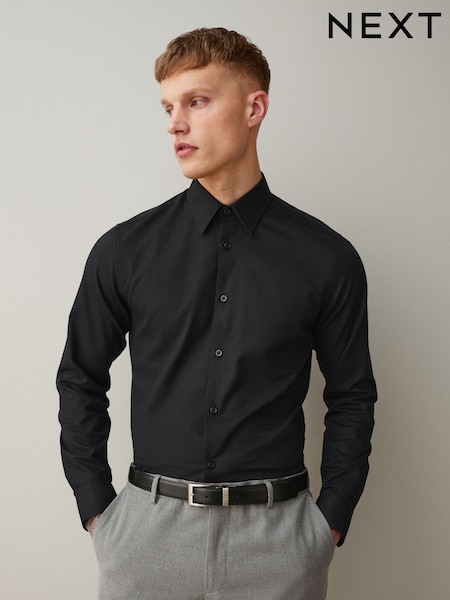 Black Slim Fit Easy Care Single Cuff Smart Shirt
