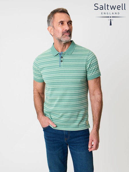 Saltwell Green Jacquard Stripe Short Sleeve Polo Shirt