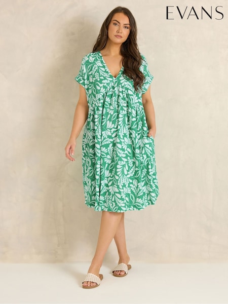 Evans Blue Short Sleeve Button Thru Denim Maxi Dress