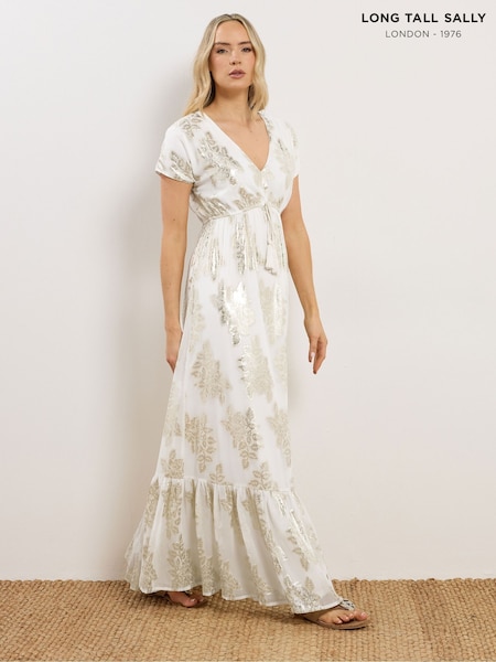 Long Tall Sally White Metallic Jacquard Midaxi Dress