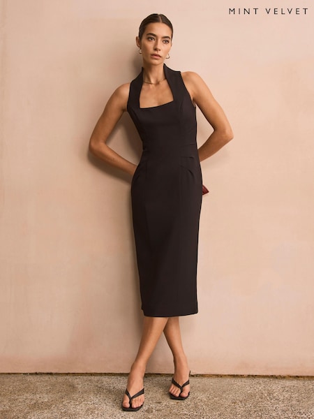 Mint Velvet Black Sleeveless Fitted Midi Dress