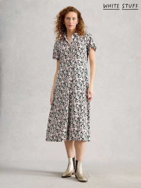 White Stuff Black Rua Jersey Shirt Dress