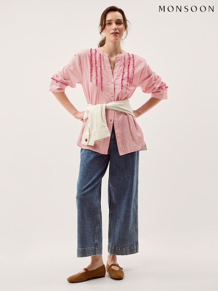 Monsoon Red Ceres Frill Stripe Shirt