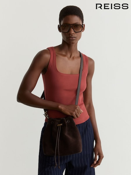 Reiss Rust Red Riva Stretch-Cotton Ribbed Square-Neck Vest