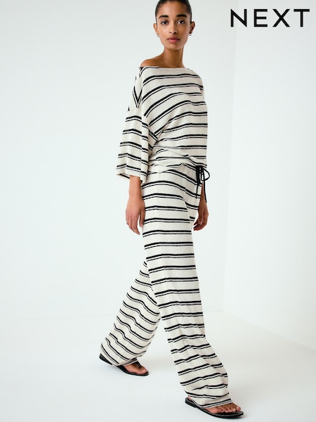 Ecru/Black Stripe Knit Look Wide Leg Trousers