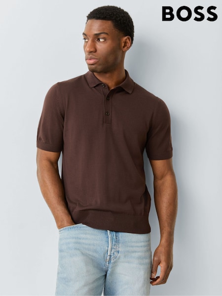 BOSS Brown Nolano Regular Fit Knitted Polo Shirt