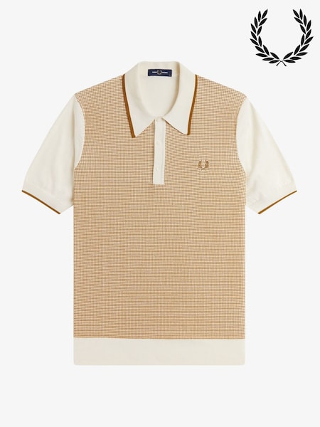 Fred Perry Cream Tonic Waffle Knitted Polo Shirt