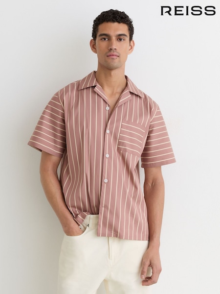 Reiss Dusty Pink Vanfleet Cotton-Blend Stripe Cuban-Collar Shirt