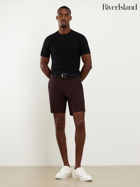 River Island Stone Brown Slim Fit Belted Chino Shorts