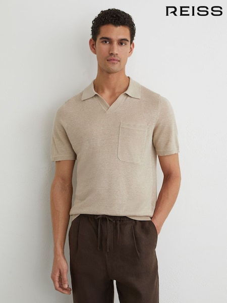 Cream Cotton Linen Blend Knitted Polo Shirt