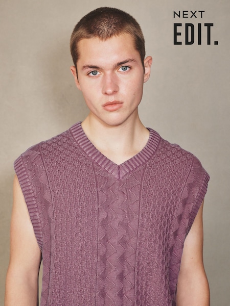 Lilac Purple EDIT Acid Wash Cable Knitted V-Neck Tank
