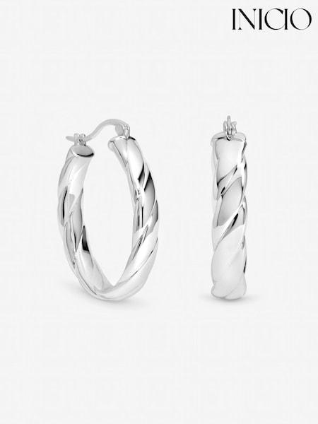 Inicio Sterling Silver Plated Polished Textured Oval Hoop Earrings