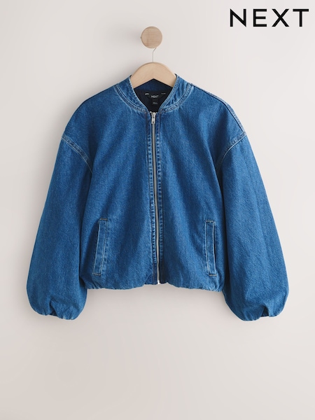 Ecru Funnel Neck Zip Through Boxy Denim Jacket