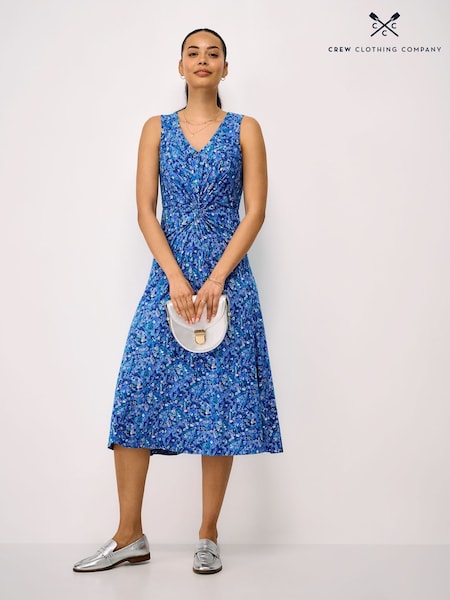 Crew Clothing Blue Flora Sleeveless Twist Front Jersey Dress