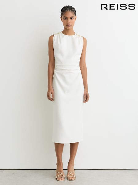 Reiss Ivory Bronte Jersey Fitted Sleeveless Midi Dress