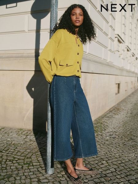 White Stuff Blue Tia Wide Leg Crop Jeans