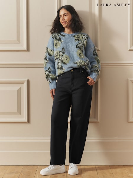 Laura Ashley Blue Denim Button Front Detail Wide Leg Jeans with Front Seams