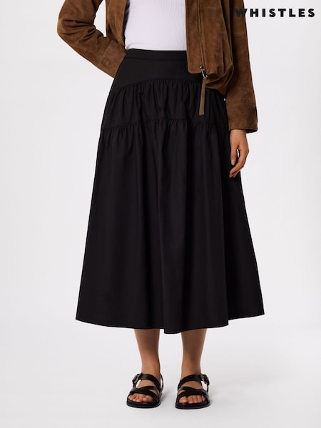 Whistles Black Petite Mini Spot Fit and Flare Skirt