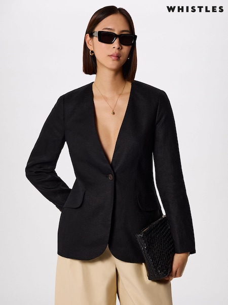 Whistles Aliza Waisted Leather Black Blazer