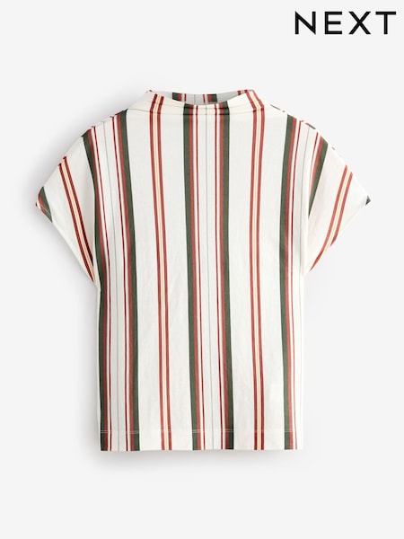 Lipsy Orange Buttoned Ribbed Crew Neck Short Sleeve Knit Top