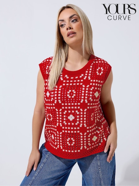 Yours Curve Red Limited Crochet Vest