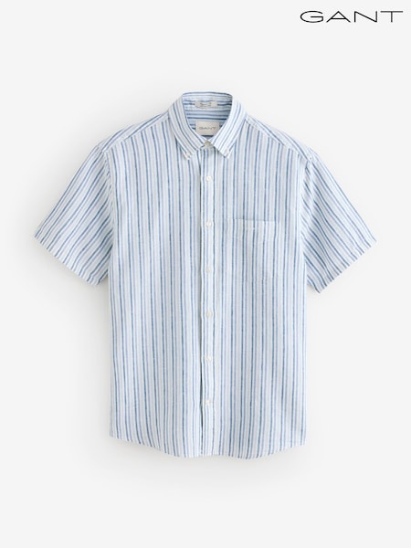 Синий - Хлопковая льняная рубашка в полоску GANT