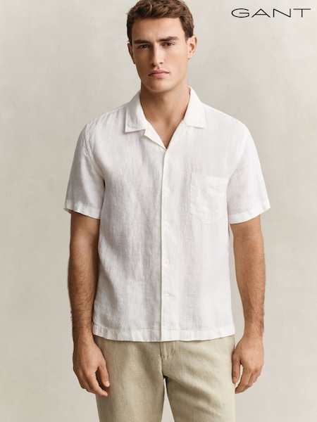 Зеленый - Хлопковая льняная рубашка в полоску GANT