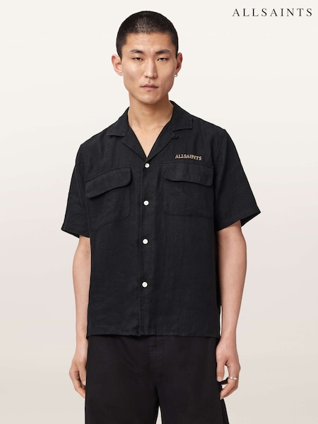 Черный - Рубашка классического кроя из 100% льна BOSS Relegant