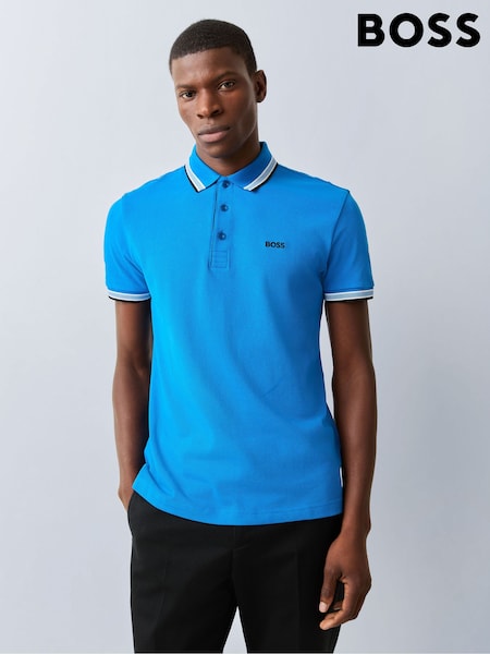 Светло-голубой - BOSS рубашка поло классического кроя с коротким рукавом Paddy