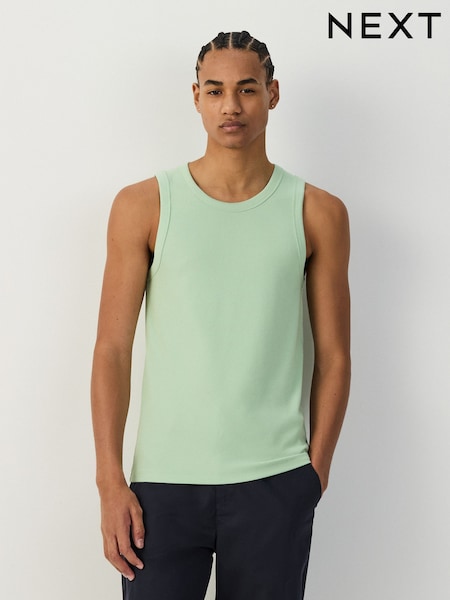 Зеленый - Зауженный крой - Майка в рубчик