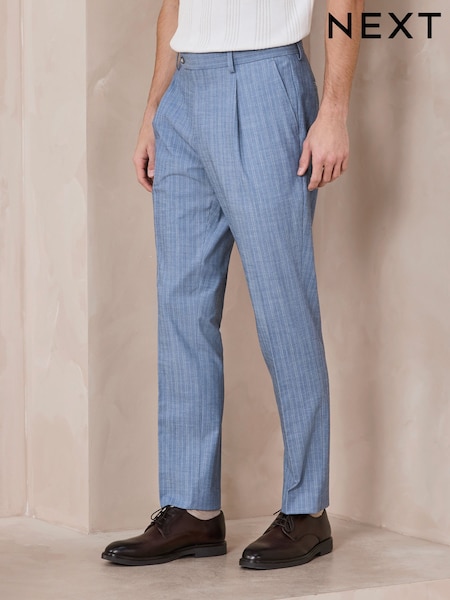Синий шамбре - Брюки зауженного кроя в полоску