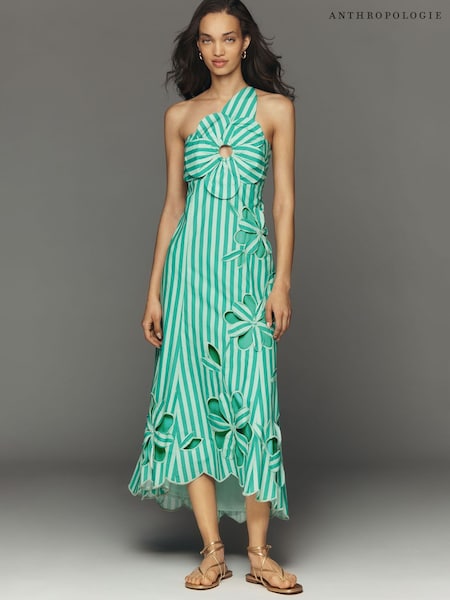 Зеленый - Платье миди на одно плечо с цветочным принтом и вырезной отделкой Anthroplogy