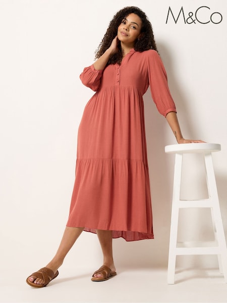 Коричневый - Ярусное платье макси с защипами M&Co