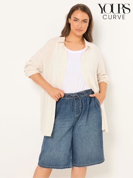 Умеренный синий - Джинсовые шорты с эластичным поясом Yours Curve
