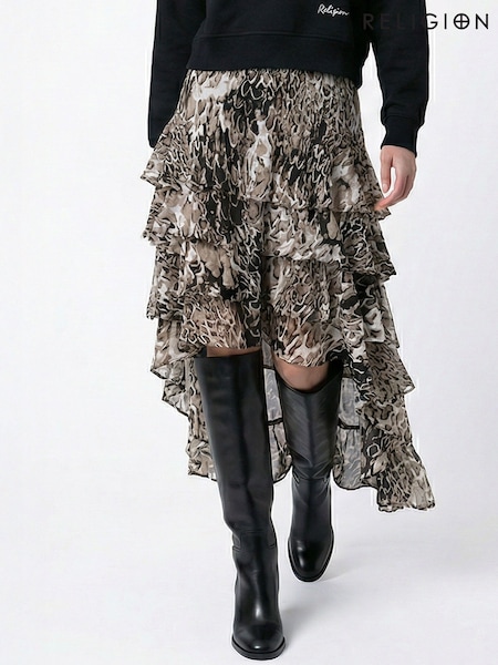 Красный - Юбка для особых случаев с оборками и цветочным принтом Religion Fae