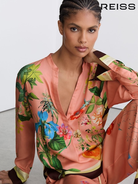 Рубашка на пуговицах с тропическим принтом Reiss Milos