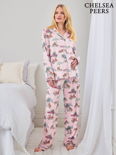 Chelsea Peers Maternity Tencel™ Modal Lounging Leopards Print Long Pyjamas Set