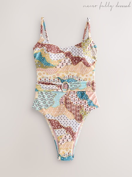 Слитный купальник с моделированием в области живота с поясом Never Fully Dressed