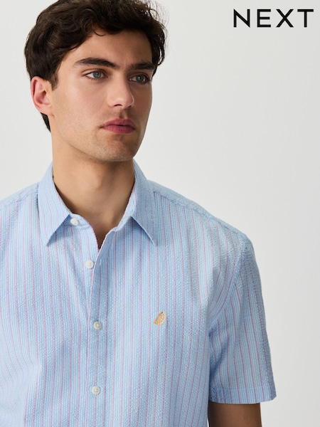 أزرق - قميص خفيف بكُم قصير وبتصميم مخطط