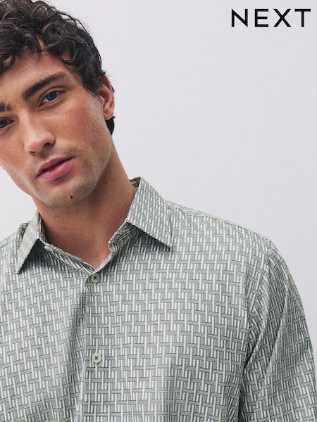 طبعة هندسية بالأخضر المريمي - قميص كم طويل