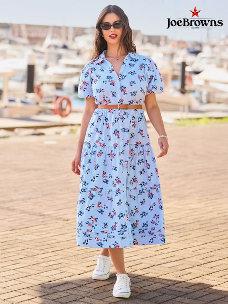 أزرق داكن - فستان بتصميم قميص بارز الملمس بأزرار كاملة للحوامل من JoJo Maman Bébé