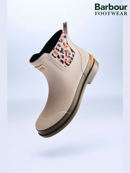 Barbour® Cream Mist Leopard Print Abbeyfield Packable Ankle Wellington Boots