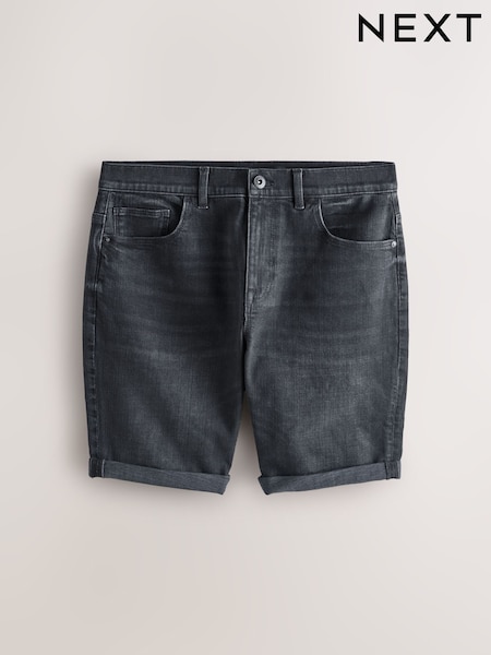 Black Straight Fit Stretch Denim Shorts