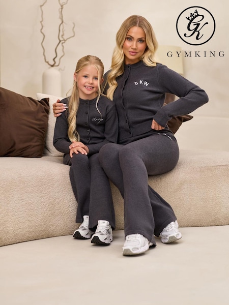 Charcoal Grey Chenille Gold Button Pocket Cardigan Co-Ord
