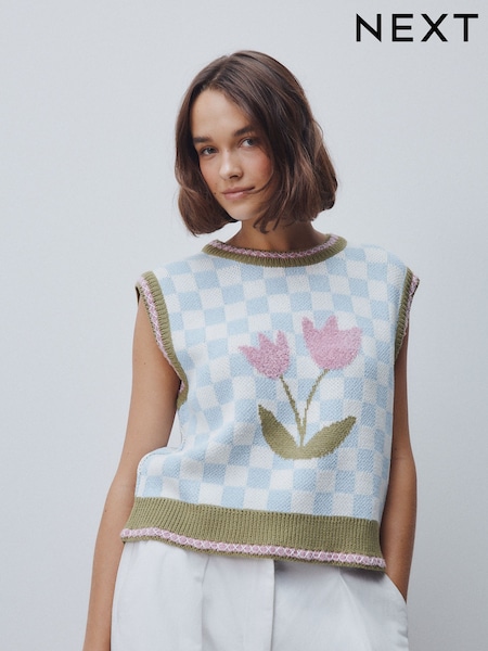 Green Tulip Check Knitted Tank