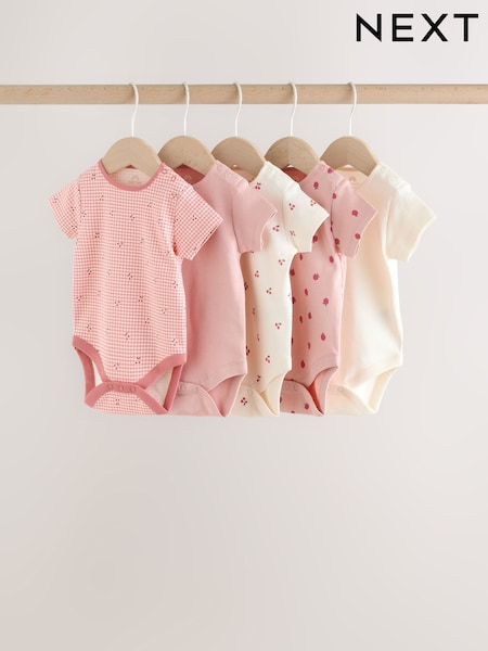 Pink Short Sleeve Baby Bodysuits 5 Pack