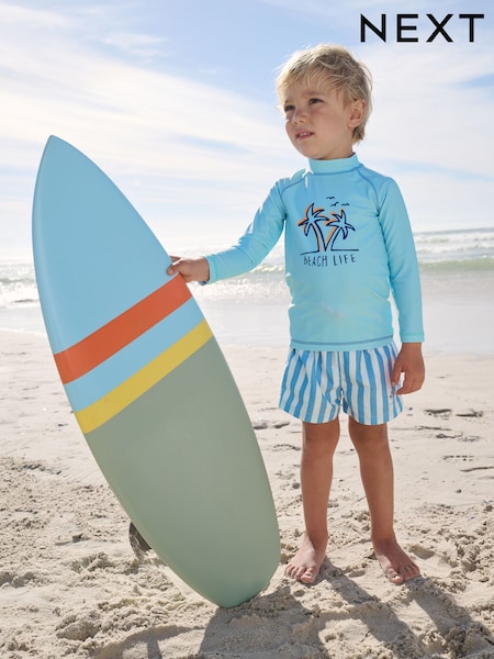 藍色 - 防曬防曬衣和游泳短褲組合(3個月-7歲)