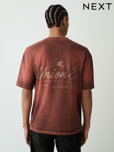 紅色洗水 - 寬鬆版 - 印花重磅T卹